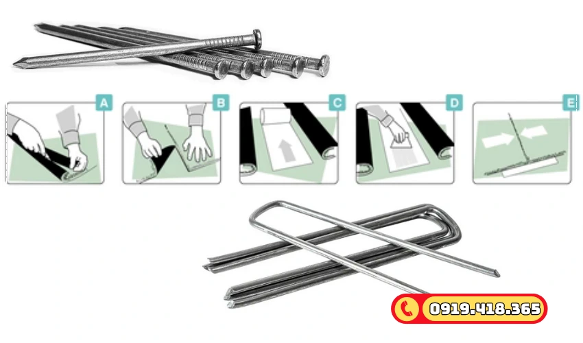 Cố định cỏ nhân tạo xuống mặt nền bằng đinh U