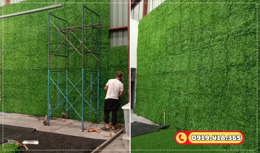 - Thi công tường cỏ check-in: Mảng tường phủ cỏ nhân tạo vừa đẹp vừa độc đáo, tạo điểm nhấn ấn tượng để khách thỏa sức chụp ảnh check-in sang chảnh.