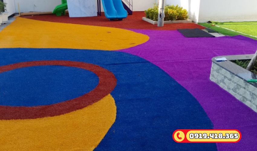 Cỏ nhân tạo màu tím trang trí sân chơi cho trẻ